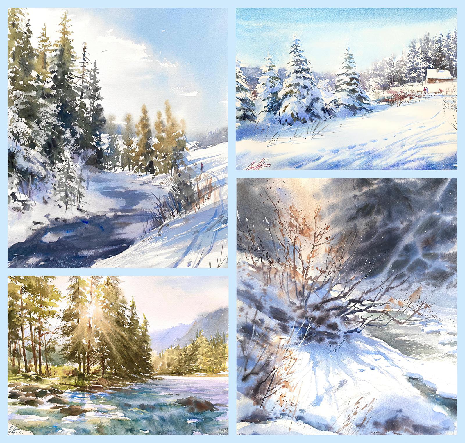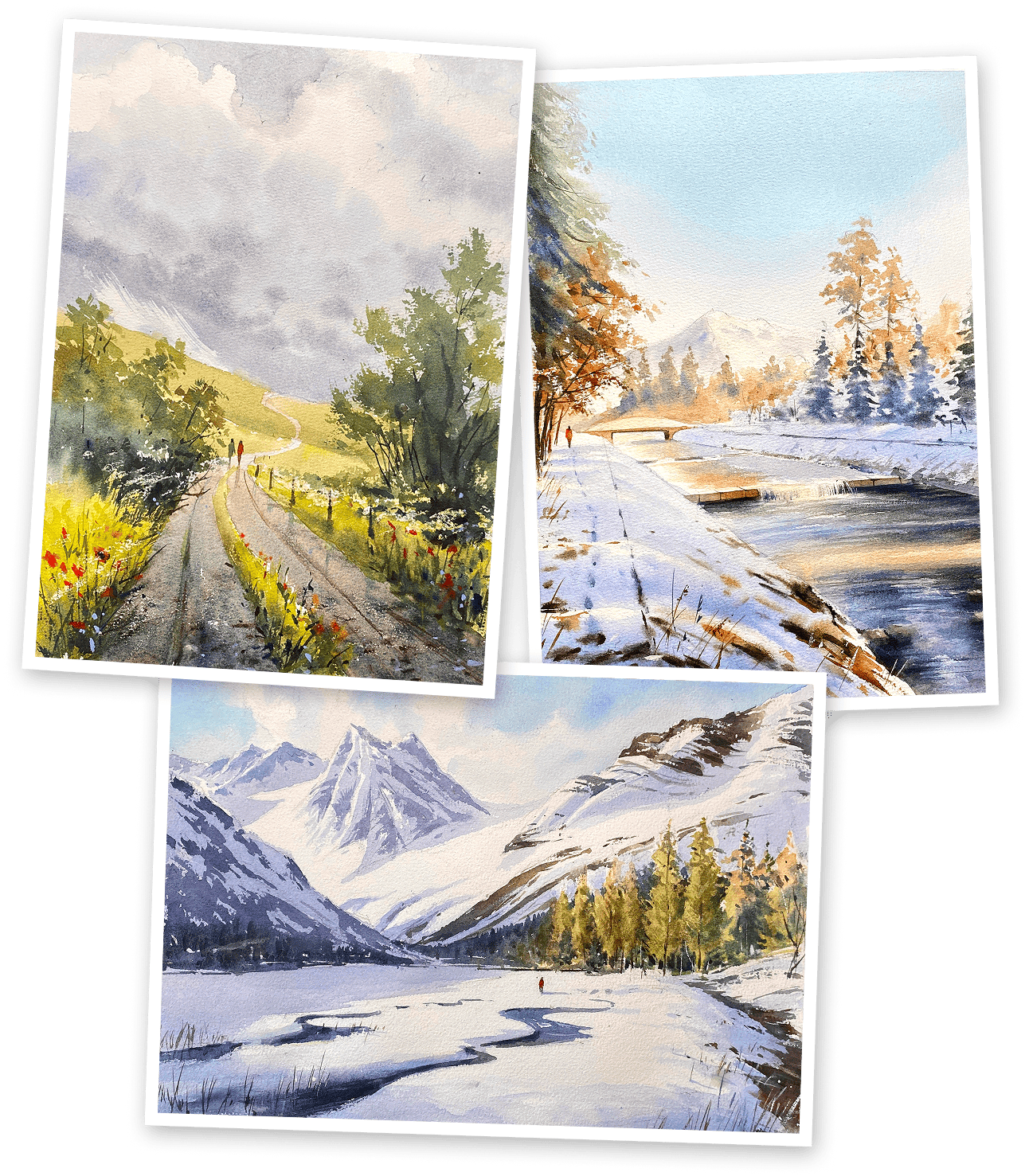 Вы создадите 8 уникальных пейзажей, которые помогут вам передать красоту природы с помощью различных текстур и цветовых переходов. Вы не только освоите основные принципы акварельной живописи, но и узнаете о законах построения природного пейзажа, что позволит вам свободно выражать свои идеи и чувства на бумаге.